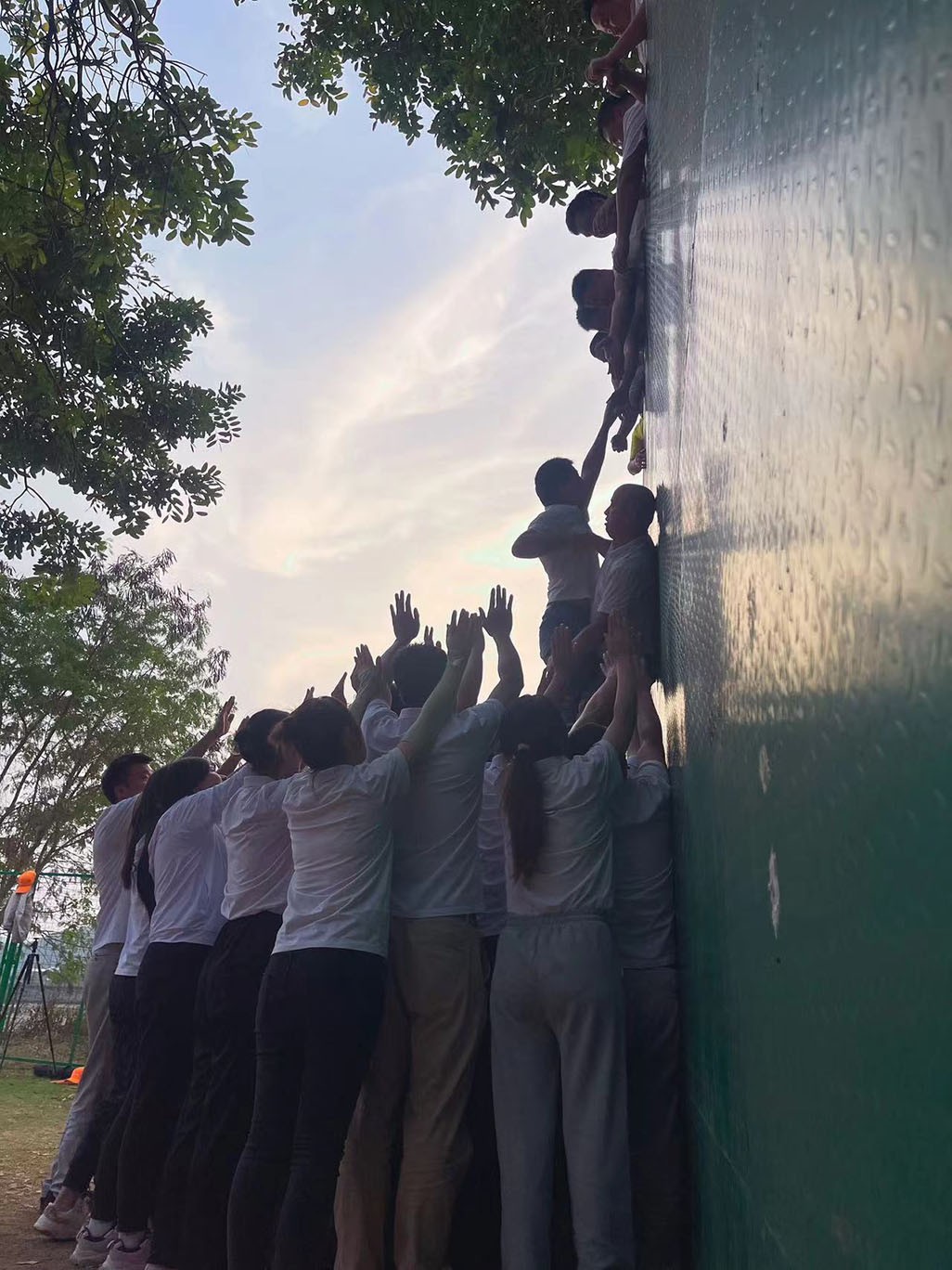 經過午間的休息和調整之后,大家在領隊的號召下繼續(xù)拓展活動,組員拼接塑料管片讓彈珠一路滾動直到落入前方指定紙杯中(珠行萬里),分組協(xié)作按照任務卡和圖形卡拼七巧板(戰(zhàn)國七雄),徒手翻越四米高墻(畢業(yè)墻),活動現(xiàn)場氣氛緊張,過程中大家雖屢屢受挫,卻空前團結,加油聲響亮,最終取得任務成功!