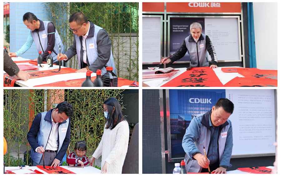 儒韻雅風展成果,筆歌墨舞留清香。鳳崗書協老師們現場揮灑豪墨,場面可謂壯觀,且氣勢磅礴。地面紅彤彤一片,都是書協老師們揮毫的春聯。CDWK創點與鳳崗書協的交流活動,無疑是與書法文化有機融合,同時也為弘揚鳳崗企業文化和書法文化搭建了一個良好的平臺。