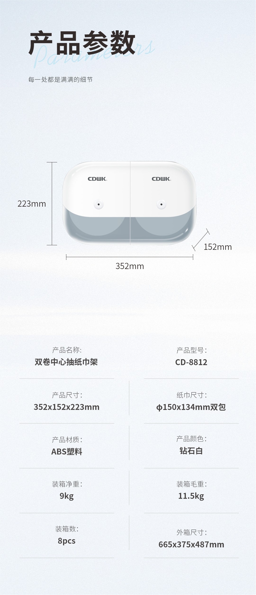 紙巾尺寸:150 × 134mm*雙卷